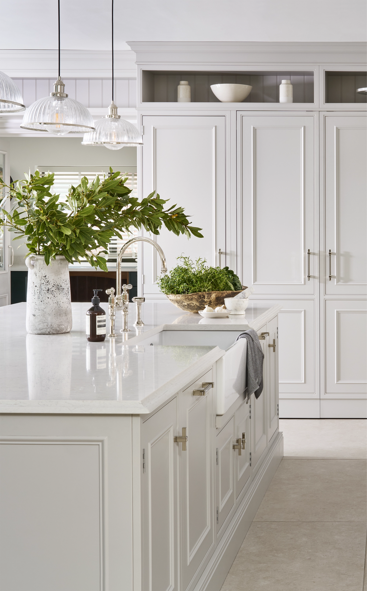 Why green cabinetry and warm brass work